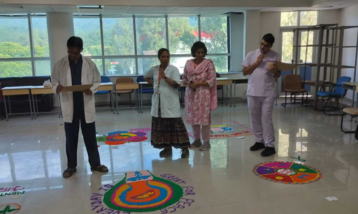 मानसिक स्वास्थ्य के बारे में जन जागरूकता के कार्यक्रमों को बढ़ावा देने के उद्देश्य से इन दिनों एम्स ऋषिकेश में सप्ताह व्यापी कार्यक्रम ’विश्व मानसिक स्वास्थ्य सप्ताह’ मनाया जा रहा है। इस श्रृंखला के तहत अलग-अलग दिनों में ’आपातकाल में मानसिक स्वास्थ्य’ विषय पर रंगोली और फोटोग्राफी प्रतियोगिताओं का आयोजन किया गया। संस्थान के मनोचिकित्सा विभाग, कॉलेज ऑफ नर्सिंग और आयुष विभाग के संयुक्त तत्वावधान में आयोजित इन प्रतियोगिताओं में संस्थान के मेडिकल स्टूडेंन्ट्स, नर्सिंग छात्राओं और अन्य स्टाफ ने प्रतिभाग किया। इस दौरान रंगोली प्रतियोगिता में प्रतिभागियों ने आपात काल में मानसिक मनोवेदना को प्रदर्शित करते जीवंत चित्रण प्रदर्शित किए वहीं फोटोग्राफी प्रतियोगिता में मानसिक स्वास्थ्य के लाभ को दर्शाते सुन्दर फोटो दर्शाए गए। मनोचिकित्सा विभाग के हेड डाॅ.अनिंद्या दास ने बताया कि रंगोली प्रतियोगिता में पूजा व अनुप्रिया की जोड़ी को प्रथम, रिया और काजल की जोड़ी को द्वितीय तथा पायल और अंजली की जोड़ी को तीसरा स्थान प्राप्त हुआ। सभी रंगोलियां आपातकाल में मनोवेदना की जीवंत चित्रण को वया कर रही थी। प्रतियोगिता में सुंदरपाल को प्रथम, संजना कामरा को द्वितीय एवं अरुण रवि को तृतीय स्थान प्राप्त हुआ।